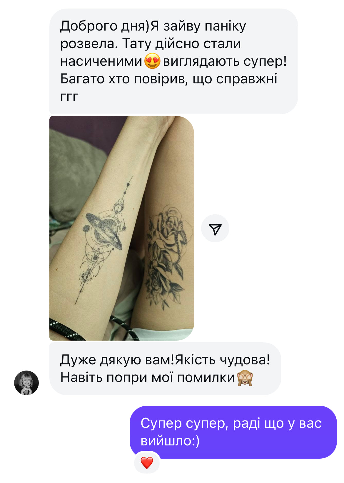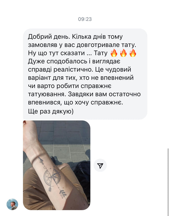 - Менее реалистичные - Каждый товар на сайте начинается из слов "Долговременная" или "Временная" это и определяет тип татуировки